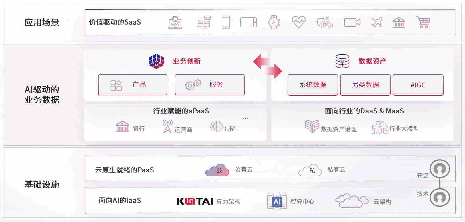 数字时代,,,围绕企业数字化转型的关键要素,,Z6尊龙数码开创性的提出数云融合战略和技术体系框架,,着力在云原生、、数字原生、、、、AI原生和信创产业上架构产品和服务能力,,,,为处在不同数字化转型阶段的快消零售、、、、汽车、、、、金融、、医疗、、、、政企、、、教育、、运营商等行业客户提供泛在的敏捷IT能力和融合的数据驱动能力,,,构建跨界融合创新的数字业务场景和新业务模式,,助力企业级客户建立面向未来的核心能力和竞争优势,,,,全面推动社会的数字化、、、、智能化转型升级。。。